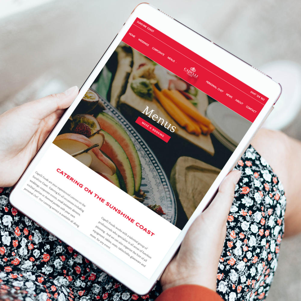 Capelli Foods is a catering company on the Sunshine Coast, producing a variety of delectable foods for any occasion. Weddings, birthdays, corporate events and Christmas parties are all catered for using locally sourced ingredients and organic produce where possible. They approached GOOP Digital for a fresh redesign.