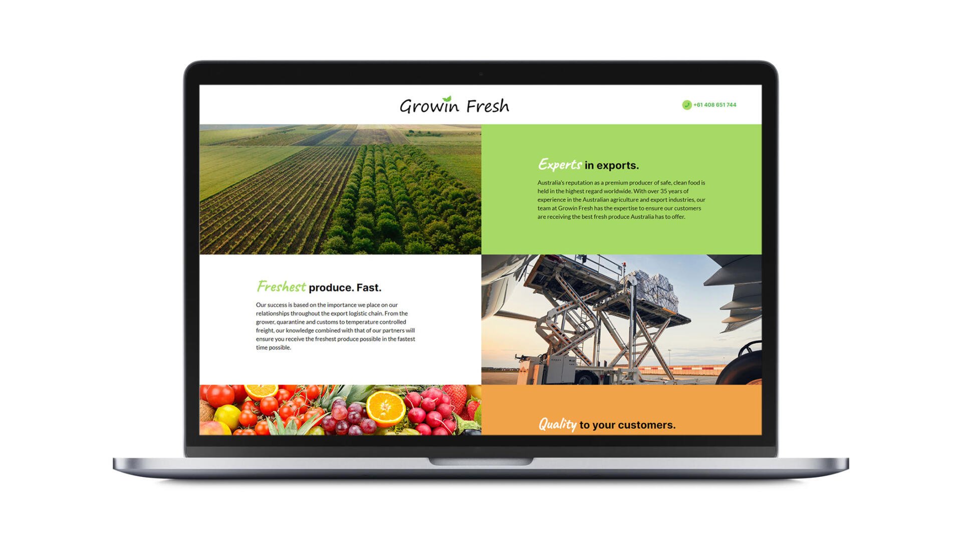 The team at Growin Fresh have over 35 years of experience in the Australian agriculture and export industries, they have the expertise to ensure that their customers receive the best fresh produce Australia has to offer. They were looking for a holding page to give them online presence.