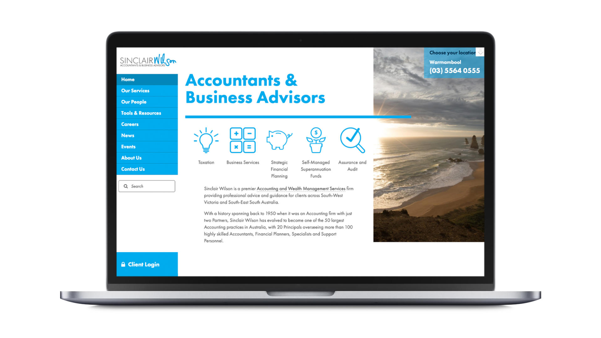With offices spread throughout 10 locations across South-West Victoria and South-East South Australia, Sinclair Wilson is one of Australia's premier accounting and wealth management firms. They engaged GOOP Digital for website redesign and refresh.